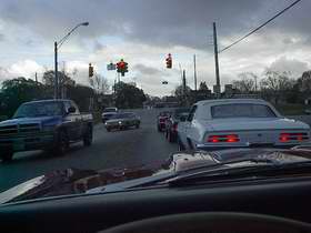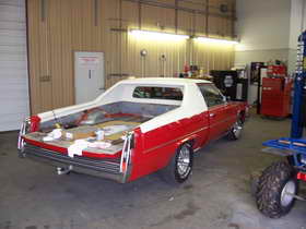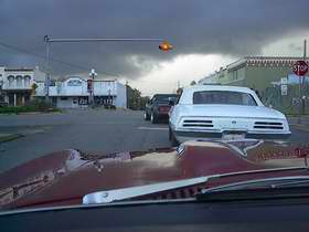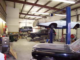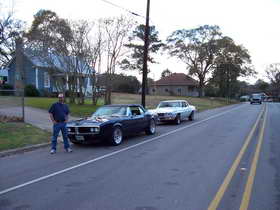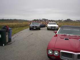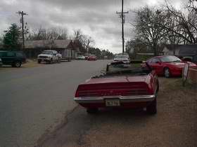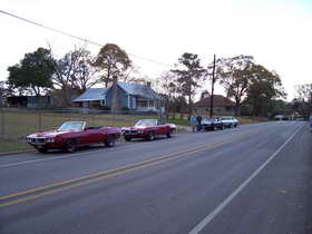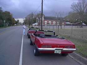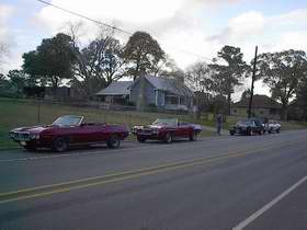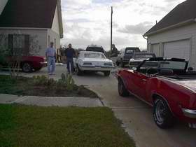 This was our last chance to cruise in 2004 so rain or shine, we went for it. Once the rain started, Bjorn, Andy and I stopped under an I-10 overpass to raise the tops on the convertibles. I'm glad that they didn't have the 6 minute towing ordinance in place. We arrived at Paul's house and checked out his new bird and nicely restored 1962 'Vette. His garage has 10 foot ceilings and a nice above ground car lift which he bought for $300. The weather cleared (or rather it stopped raining) so the four of us continued to Lawrence Marshall's Antique Car Museum. Lawrence Marshall now 86 years old was hanging out there and was kind enough give us a personal tour. Next it was off to Bellville for lunch. Andy had a glitch with his alternator along the way. Fortunately it didn't affect our trip. |